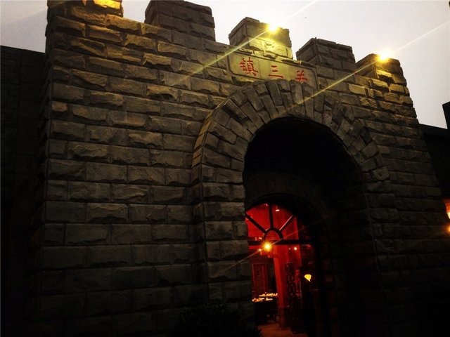 店门是一个城门的设计。好霸气。外面还有露天的座位。如果天气不冷在外面吃火锅位置很宽敞。