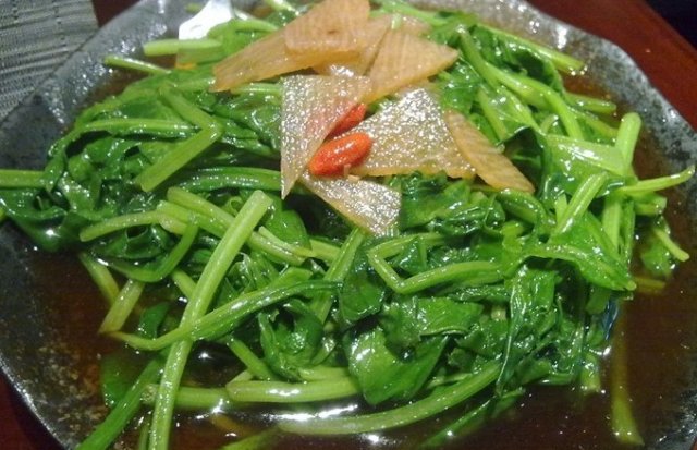 @淮山菠菜/35块,这个菜我还挺喜欢的,菠菜烧的不涩嘴,大概是因为烧的比较长。然后上面一点点好像是山药,我挺喜欢的,脆脆的,味道也还不错