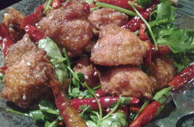 @百草辣子鸡块/48块,这个我也喜欢,辣子鸡么,我以前在学校一直点的,这里烧的也还算可以吧,就是里面再嫩一点就好了