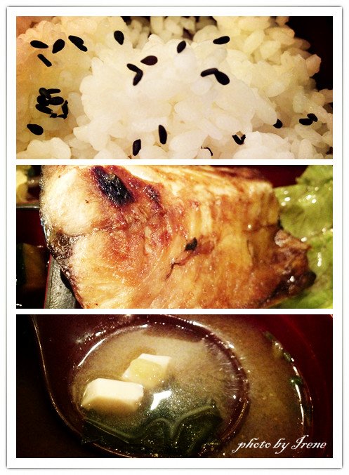 碳烧青鱼套餐,28元,这个套餐是很超值的,有饭有汤有蔬菜,沙拉,还有一大块青鱼的,用的是一个蛮可爱的五格木制盒来盛载的。青鱼表面煎得有点老了,但里面还好,肉质是那种很结实的,不错。喜欢这个白饭,上面还撒了很多黑芝麻,顿时觉得白饭原来也可以这么好吃。汤的用料也很足,面鼓味浓。