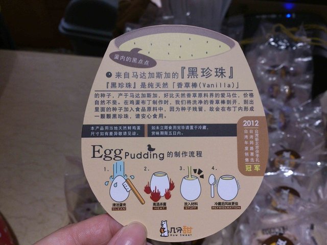 有趣的鸡蛋布丁 77ren等级32015-01-2618 浏览 关注 77就是有一帮嗜好甜品的朋友 不来个甜的压一压是不行额 阿拉目标很明确额 到了几分甜就直接买他们家的鸡蛋布丁 别的看都木有看 几个人拼凑一下买了盒装的 9个60米 单买的话是8米一个 差价还是蛮厉害额 外层的鸡蛋壳是真的 这道甜品还真是个费工夫的东西呢 布丁的口感蛮滑的 味道么也就一般吧 说不上惊艳 就是长得比较引人注目~ 他们家服务员蛮热心额 布丁可以让你试吃一口额 但是袋子就不肯多给一个了 说是一套一套配好的 没有多以上食记乃用户个人意见 , 并不代表OpenRice之观点。赞好分享有趣的鸡蛋布丁 几分甜 https://s.openrice.com/KtLT100vNmE00检举 百夏 啊啊啊啊啊啊 ,想吃鸡蛋布丁。2015-01-27 回应 张贴 评分4味道4环境4服务4卫生4抵食用餐途径堂食