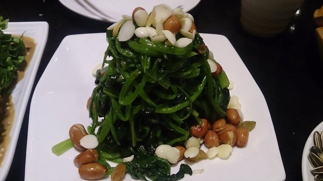 麻将凤尾,就是麻酱油麦菜,麻酱肯定是里面放了东西的,不过很好吃。