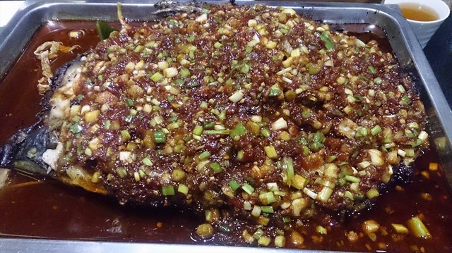 鱼香味的清江鱼,味道酸甜辣,真心不错吃,不过配菜就差一些了,可能这种口味的汤不太适合菜类,土豆豆皮都挺好吃的,莴笋的味道就差些了。