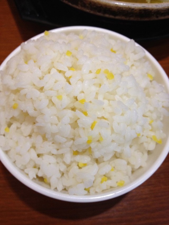 【玉米饭】米饭加了玉米粒的,口感还行,比白饭更清香。