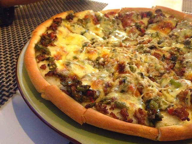 pizza厚底 烤的合适芝士足也就不觉得饼底很厚啦