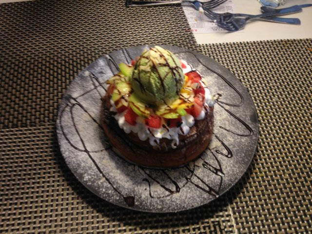 底部 有榴莲 酥脆丹麦条 上层则是堆满冰淇淋 水果