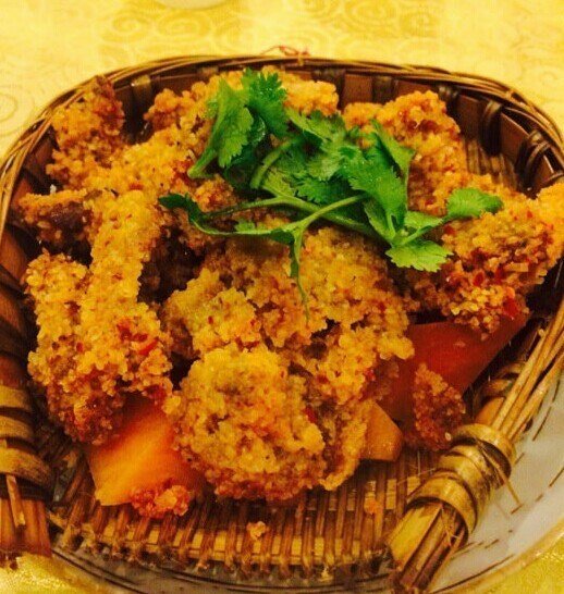 粉蒸牛肉:同样的烧法 还有一个粉蒸肉就要便宜很多,这道亮点是下面的红心番薯,好甜好香,外面粉裹的比较多,所以牛肉味道倒是吃不出来,不过总体还是我喜欢吃的。
