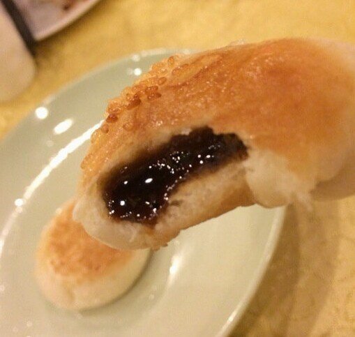 红糖锅盔:小小的 和生煎包差不多大小,看起来外表普通,一咬开来就是流陷的红糖,很甜 我倒是能够接受,朋友们好像有点吃不消,不过吃到里头是豆沙,满特别的。