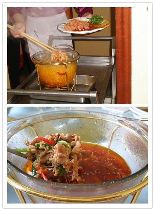 步步高升 ,很讨口彩的一个菜,造型也很特别!其实就是猪耳朵啦!吃法有点类似北京烤鸭!是包着吃的,口感爽脆多汁,很特别的。
