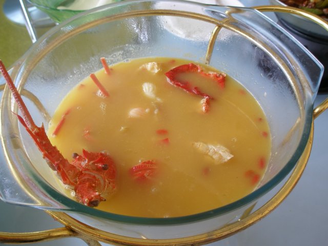 翅汤炖龙虾,原价要168元呢!上来看看色味就不错!里面除了龙虾还有很多海鲜,灵的。