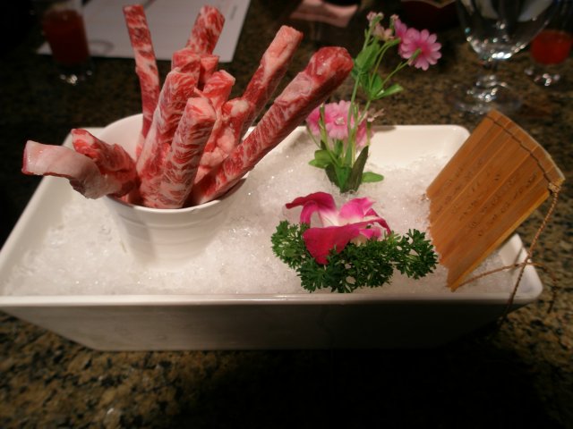 冰巢松阪猪,一串串弄好上来的,中间还夹了小萝卜,马相不错,但是吃口上就一般了。