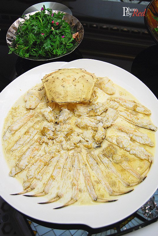家烧东海鲳鱼,新鲜是王道,好的食材加上台州大厨的好厨艺,独特风味呈现眼前,尝过之后都赞不绝口。蛋白底蒸水晶蟹,孤陋寡闻了,第一次看到通体雪白的蟹,蟹肉鲜嫩富有弹性,铺底的蛋白吸收了蟹的鲜味,美味无比。葱爆雪花牛肉,入口即化的牛肉有淡淡奶香味,一片入口回味无穷。干烧原只大明虾,酱汁浓郁,且保留着虾的原味,虾肉更为扎实,肉质弹牙、鲜嫩可口。原味烤仔排,有点像红烧肉的做法,浓油赤酱适合上海人口味。