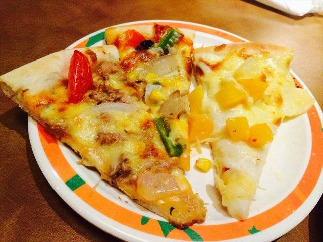 披萨去的时候,大概有六七种吧,那种中间夹馅儿的厚的披萨味道不错,料很足,就是有点大。感觉比萨的质量比以前有明显提高,就是种类略少。