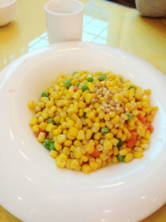 【松仁玉米】20元,松仁很少哎,不过味道很好,玉米粒也够嫩,里面点缀了青豆和胡萝卜,卖相很好看,红绿黄相间,不咸不淡