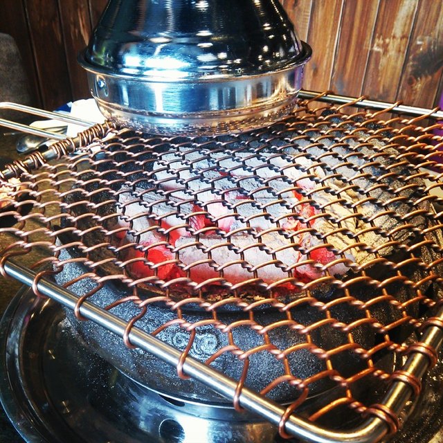 都是从纯碳架上铁网来烤的,这样烤出来的肉最原汁原味,最好吃,调料也是我喜欢的甜辣汁,不再是酱了。