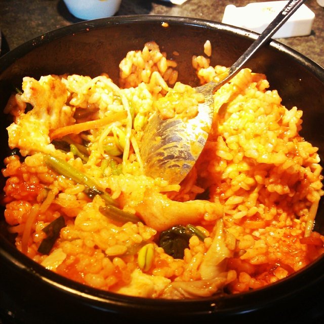 他们家还有泡菜饼和石锅饭,饼也很好吃,就是稍微咸了点,牛肉石锅饭也很好吃,那个酱我很喜欢。
