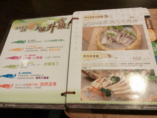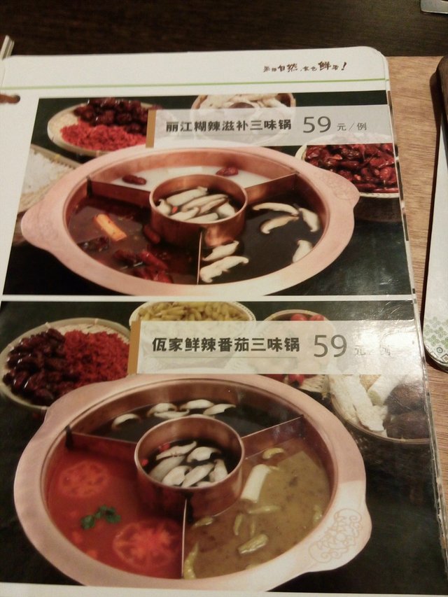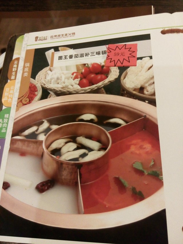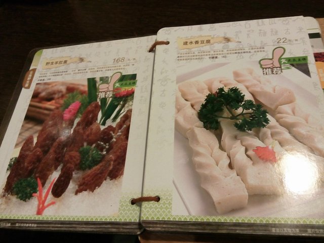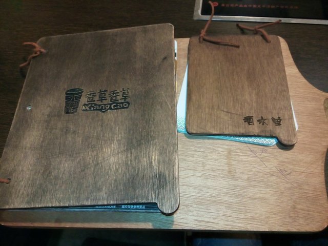 从菜单看,他家主打云南风味的火锅。另有其他下酒的小菜!木质的菜单封面,古朴沉重!
