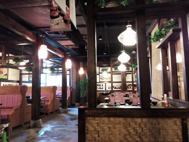 首先店面很大,店外没有明显的民族风情,但店内装饰还是挺能体现少数民族特色的,服务员的装束也是具有浓郁的云南风情,但这些身着云南地区民族服饰的服务员却未必都是云南来的,至少我随口问的几个问题,听了他们的回答就大致有个分晓了!但他家在国内分店众多,从天津店是第三十三分店来看,至少已经扩展到三十三家了!