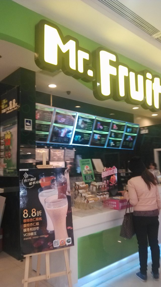 水果先生 Mr.Fruits 小丸子旭旭等级42014-11-035 浏览 关注 这家水果先生 Mr.Fruits的地址是西直门外大街1号西环广场凯德MALL购物中心3楼,吃了饭出来边上就是这家饮品店,环境不错,没有坐的地方,看着特别的干净,都是新鲜的水果,价位感觉蛮贵的,喜欢现在正当季的石榴汁,超级甜啊,冰冰凉以上食记乃用户个人意见 , 并不代表OpenRice之观点。赞好分享水果先生 Mr.Fruits 水果先生 https://s.openrice.com/KtLT1m0EJaD00检举 张贴 评分5味道5环境5服务5卫生5抵食用餐途径堂食