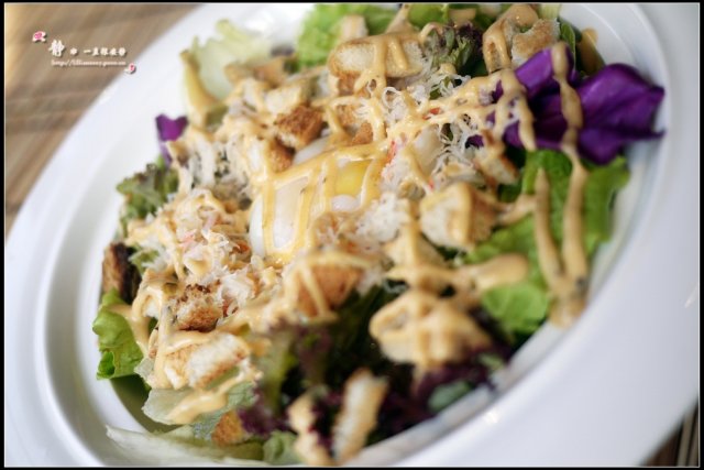 温泉雪蟹色拉,还蛮特别的一道色拉,中间摆放着一只温泉蛋,蔬菜之余还有些雪蟹肉,秘制酱料酸甜好滋味,堪称别具一格,是偶喜欢的味道!