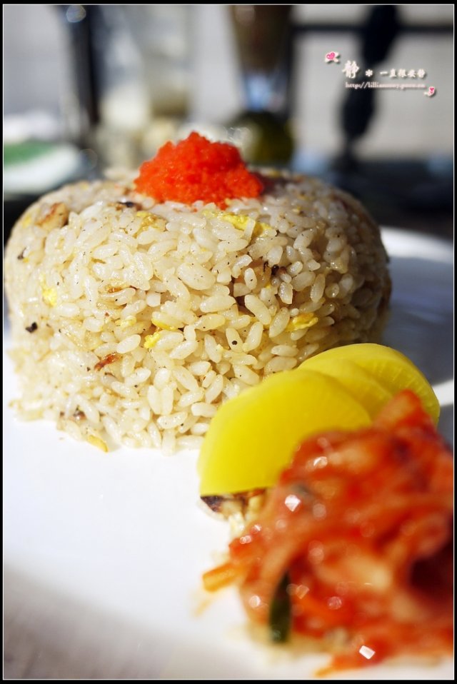 鳗鱼蟹子炒饭,色泽金黄,阳光照射下特别诱人,鳗鱼饭配上少许蟹子,毫无腥味之余还特别香郁,份量也很实在。