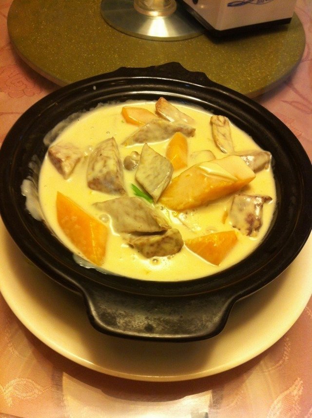 【椰汁香芋煲】这是最喜欢的一道菜了,椰汁奶味浓郁,非常的浓稠,包裹着香芋和南瓜,入口鲜甜香芋粉糯的口感,太美味了,酱汁拌饭还要满足哟!