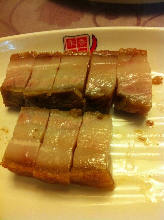 【脆皮烧肉】脆皮烧肉是港式的特色菜,看上去很油腻,实际入口外脆里嫩,肥而不腻的口感,外带香鲜肉汁多汁的美味,肥瘦比例恰到好处,果然名不虚传