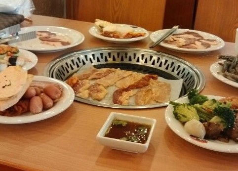 味道:水果齐全,但是西瓜不甜,菠萝挺好吃的不麻嘴,肯定是用盐水泡过的了。肉都不算太新鲜,最爱吃的是五花肉,肥瘦相间,很香,但是吃多了会腻。鸡脆骨好吃,吃上去脆脆的,而且很有嚼劲。他那的凉拌黄瓜条特别好吃,尤其在你吃完了一些烤肉之后,感觉特别腻的时候,多吃点黄瓜条,特别解腻,特脆。寿司做的很差,很醩,像是剩下的不新鲜。吃得比较多的就是虾,看上去还挺鲜亮的,吃起来肉很嫩。