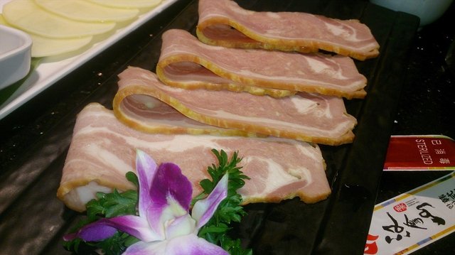 喜欢吃培根,他家的培根摆放的挺精美的,黑色的盘子,看着很有质感。培根质量不错,肥瘦相间,一共是4片,肉质非常好,烤好的培根,肥的地方比较焦脆,瘦的地方也不会柴。