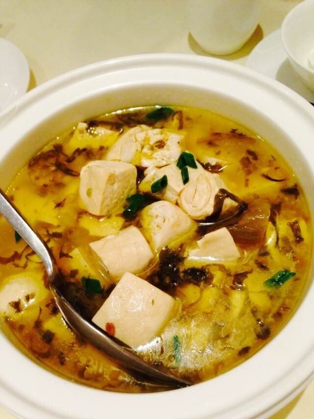 如果还不够,再加上一道酸菜豆腐煲,饭前喝些汤,很是开胃,佐之以酸菜,加上老豆腐煲出来的酸汤很浓郁。虽然炒出来的酸菜略略有点油,但是这个汤煲一直是小火开着加热,所以汤喝起来是不油的,还很酸爽。