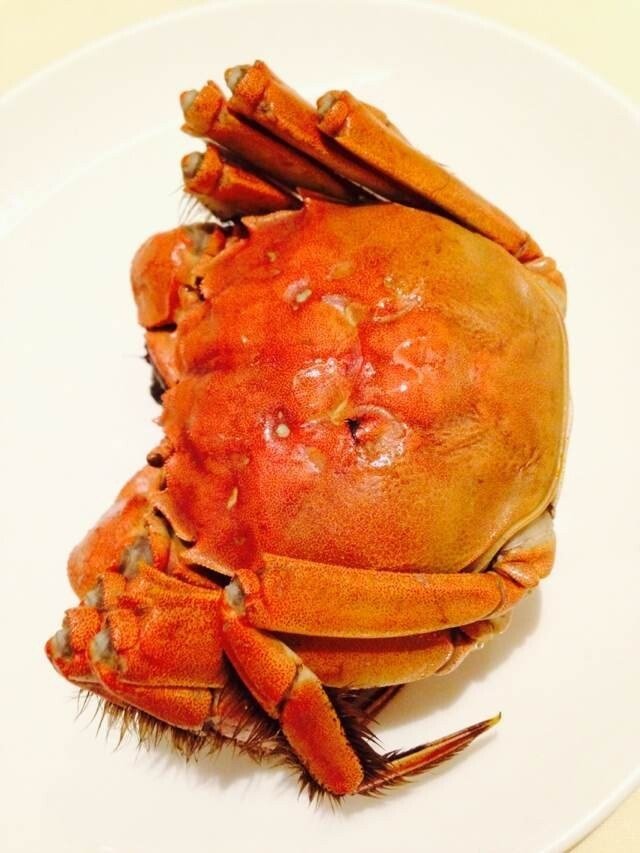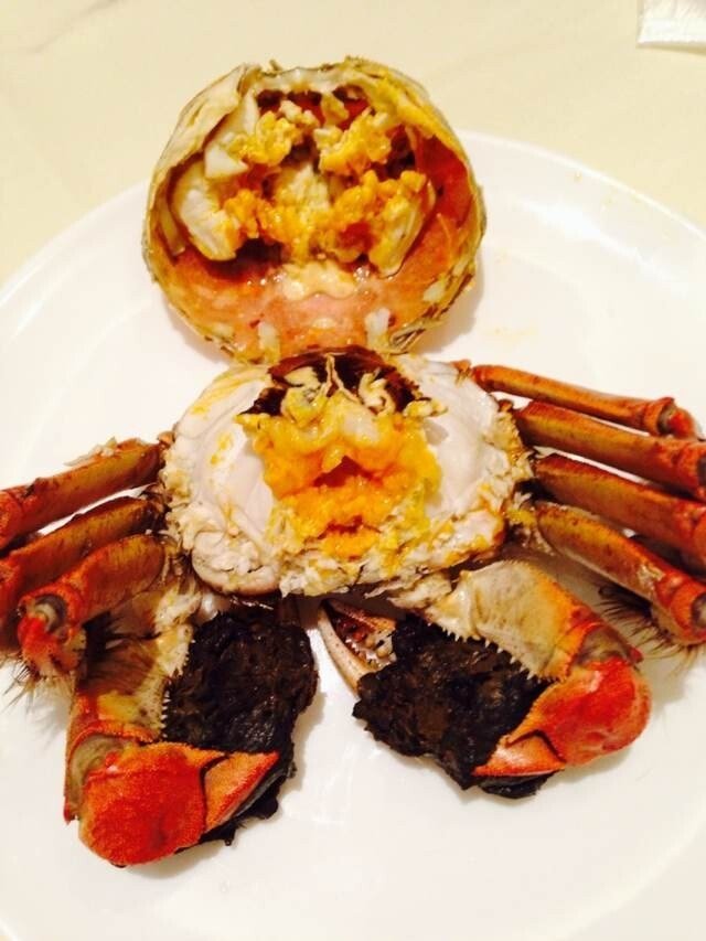 最后,吃饱了,就静下心来满满享受大闸蟹。工作人员帮我们把不能吃的部位去除,剪了重要地方,剩下的我们两个人慢慢把一整只蟹拆干净吃干净,然后喝上一杯他们特调的姜茶,心满意足。