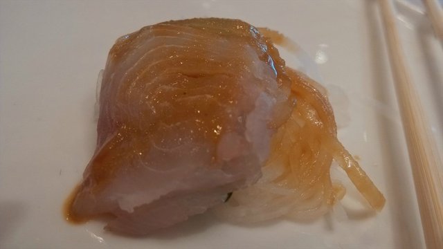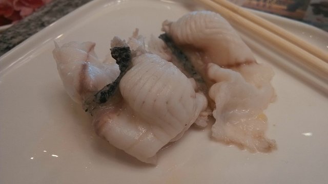 斑鱼是它家的特色,生的时候,装在盘里感觉非常的薄,好似一层膜贴在盘底似的,但涮完后其实并不薄,鱼片虽不大,但肉不少,口感很Q,肉也很实,味道还不错,它家有特制的调酱,其主要成份是姜和香油,斑鱼就着吃味道挺独特的。鱼片看上去很薄,但肉里还带着刺,虽然不是毛刺,但吃的时候也一定要注意。