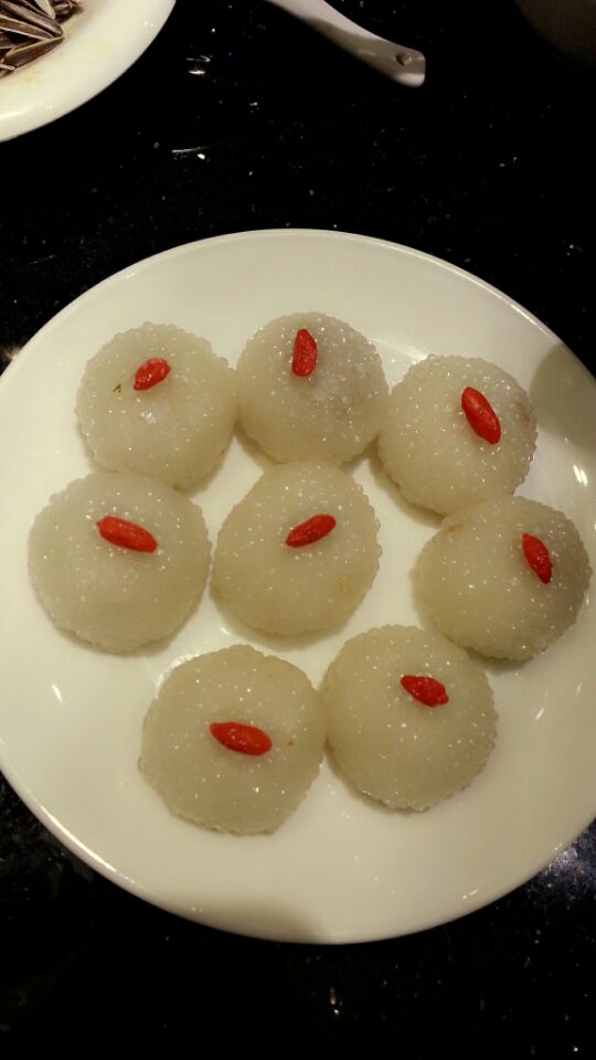 哎呀,有个卖相很好看的甜品叫什么忘了,反正就是花生汤圆外滚一层西米上锅蒸出来的,晶莹剔透的,味道真心一般。