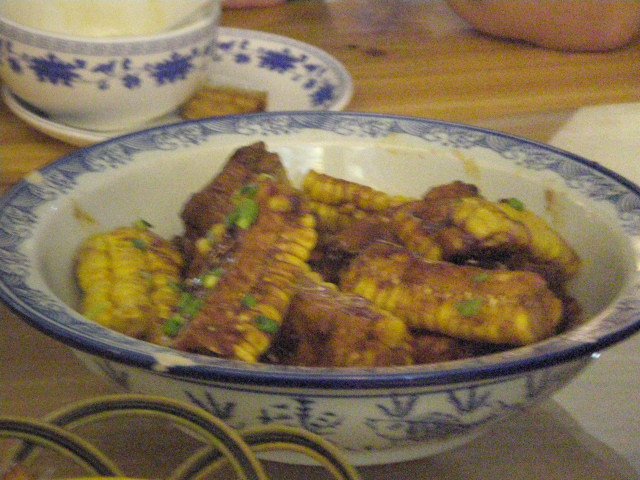 主打的是农家菜。比方说典型的有玉米烧排骨。