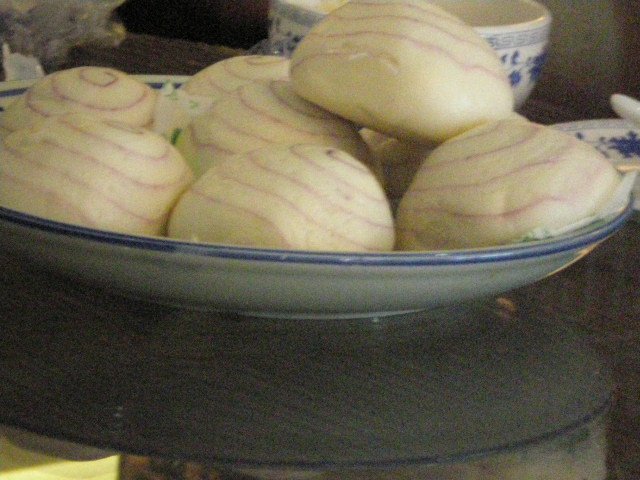 主食。包子里面是紫薯馅儿的,有的小朋友很喜欢。