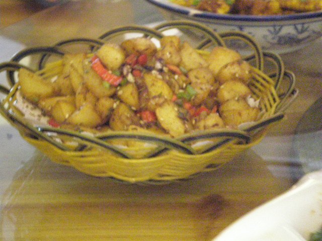 孜然小土豆。这个是有人特地点的,关键是取材,用的小土豆。再就是做法与装盘,针对农家菜来说,有点小小的新意。