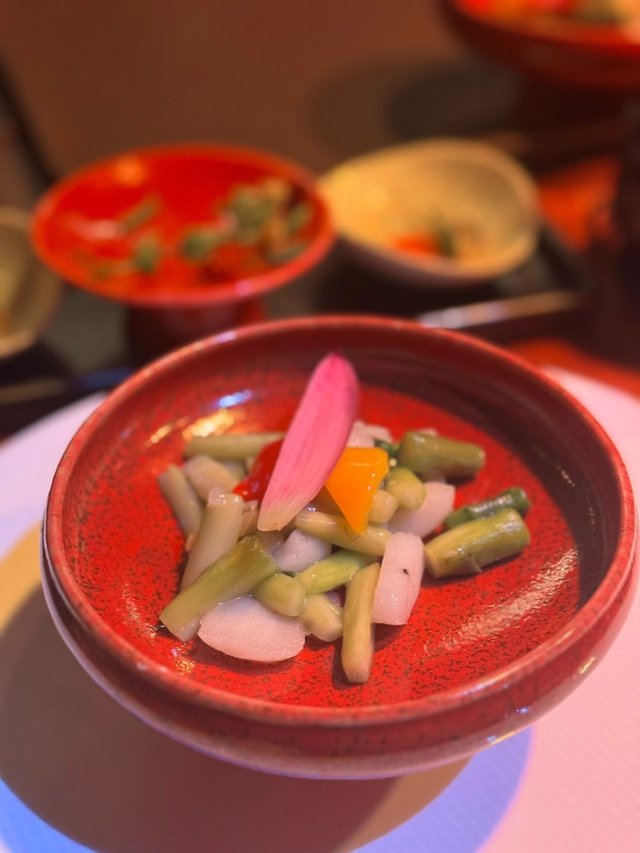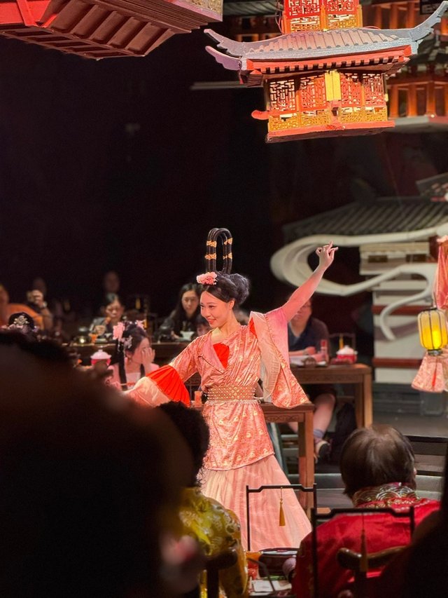 長安賦主題,可以俾客人身着漢服入宴,當然如需妝造服務,要額外收費。人均港幣350 左右,可以體驗味覺和視覺的享受,每一道菜呈上之前都會有故事或者禮樂演奏,代入感超強。仲會使用投射技術,認真不錯。