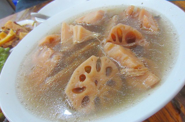 【藕汤】8,藕多,汤少,又遇到我是爱喝汤的娃娃,这么些,明显不够,藕汤说是素汤也不完全,因为很明显能喝出是炖汤,只是说这碗没有舀肉而已,所以还是很香很好喝滴。【蘸碟】蘸藕用,其味道一般了,不如吃白味的。