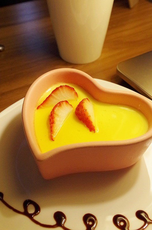 我比较喜好的是焦糖布丁:16米!表面是放了切开的草莓,不仅漂亮味道也很赞,焦糖布丁浓香甜腻,适量即可。 这个关注店家微信可以送。