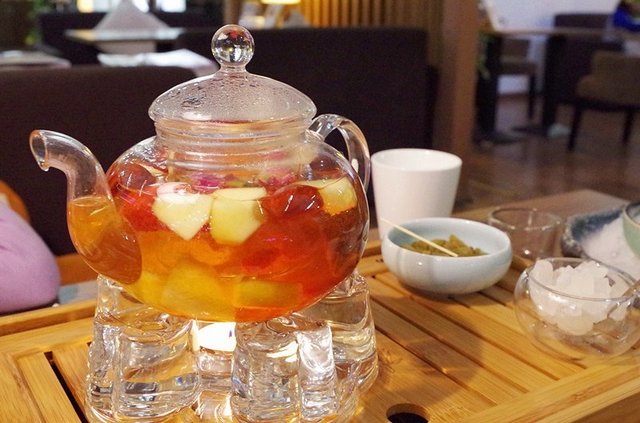 所有的座位间距空间都还算大,自由自在,适合聊天拍照。在这里点壶花果茶,品尝1点甜品,消磨掉一个懒散舒适的下午。