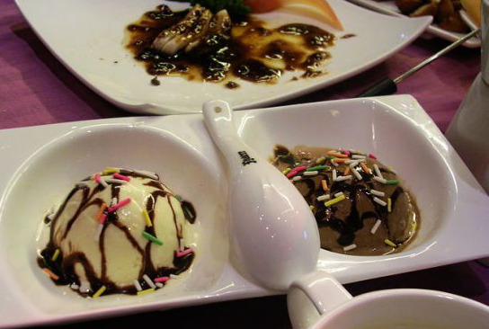 【巧克力火锅】巧克力火锅也是要着重介绍的。。。 我承认我一吃high就忘乎所以了。。。于是。。。毫无疑问毫不意外。。。我又被巧克力烫着了。。。 爱吃甜的不要错过,巧克力火锅配的都是水果