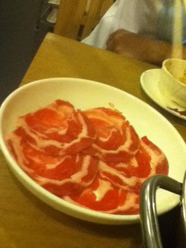 之前冷冻再冰箱里然后有切肉机现场切肉