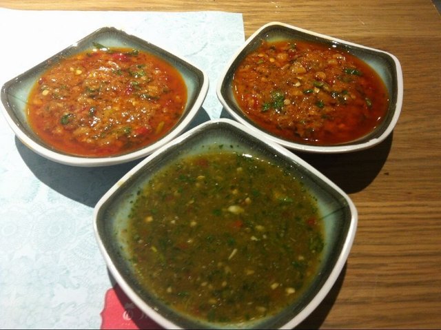 朴田秘制蘸碟也将就,看起来红红的,一点不辣
