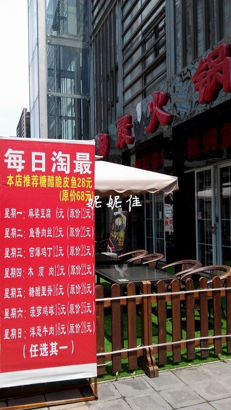 淘最火锅店在神路街的美食街上。午餐是11点营业,环境还不错,店外是花园式栅栏围着,有几张室外的座位,菜品范围还很广,主要是火锅、麻辣香辣、烤鱼、麻小、各种炒菜,店外的招牌都写着每天的特价菜,看价格很实惠,只是不知味道和量如何。梭边鱼火锅也是全天75折的优惠,不过团购的9.9套餐更实惠,虽然中午人不多,但预约是必须,每天团购使用限20桌,一桌仅限一张券。