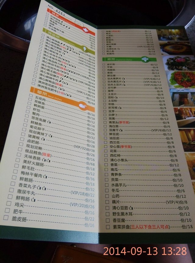 荤菜:【麻辣脆】、【本味牛肉】、【麻辣牛肉】、【千层肚】、【鲜鸭血】