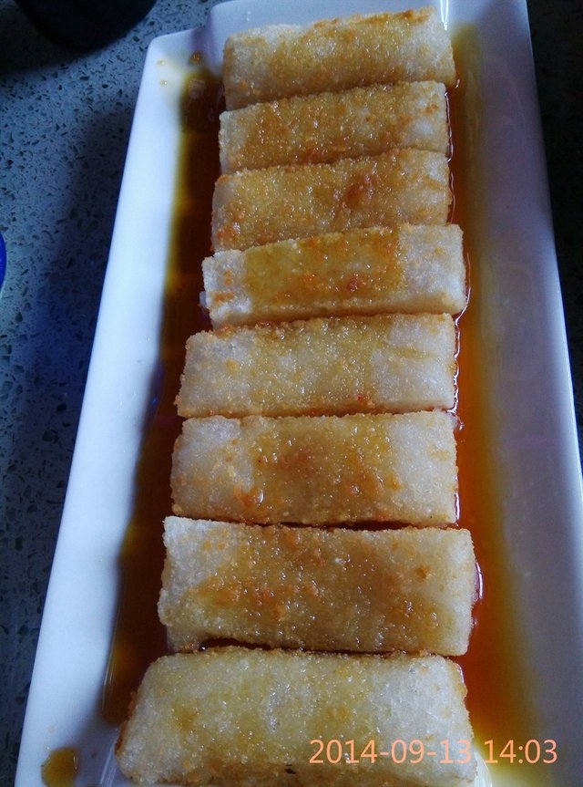 最后就是【红糖糍粑】:糍粑相当的棒,外皮炸得轻柔的酥,内里是耙耙的软,材质很地道,不是那种水垮垮的混合物,稍微有点遗憾的是红糖,稀了一点。