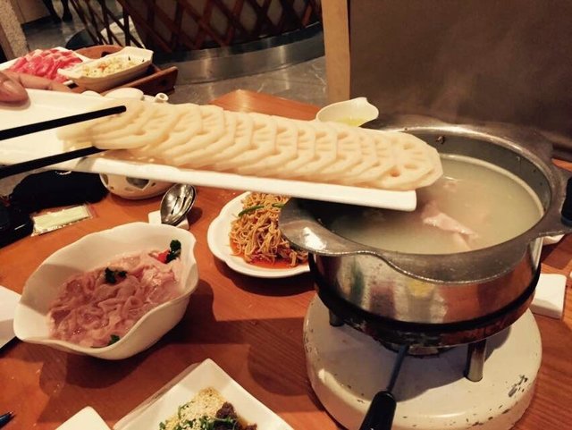 汤很鲜甜,烫食材之前先喝了碗鱼汤,哇咔咔。一个赞。