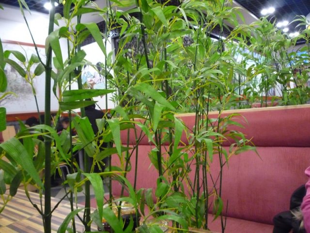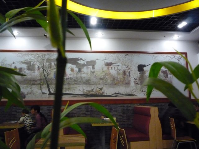 环境:非常江南的风格,墙上画着水墨画、座位间的格挡是竹子