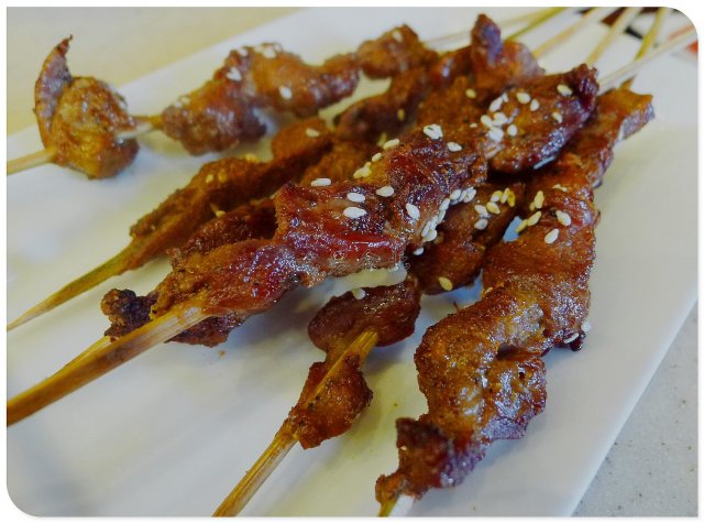 烤羊肉串,14元3串,现在买一送一,所以14元可以买6串,羊肉味道真心不浓,孜然味却是相当的浓,羊肉烤得太过了,部分区域都干巴了,辣度挺好,要是辣锅有这个辣度就好了,串不大,14元6串如果是原价还算可以,4串有些坑爹了。