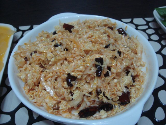 凉菜:果味瓜条,炝拌圆白菜,炝拌萝卜皮,